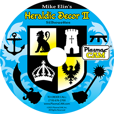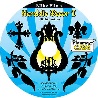 Each professional art disc contains various silhouette shapes designed for use in metal projects like the samples on this page. These images were scanned from highly detailed, hand-drawn artwork and converted into PlasmaCAM drawing format by our DesignEdge software. They are ready to cut on your machine and come out really smooth and precise.